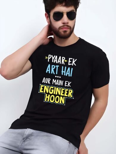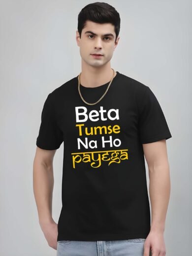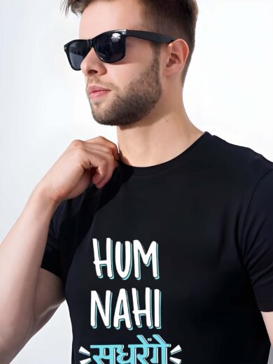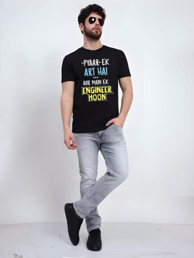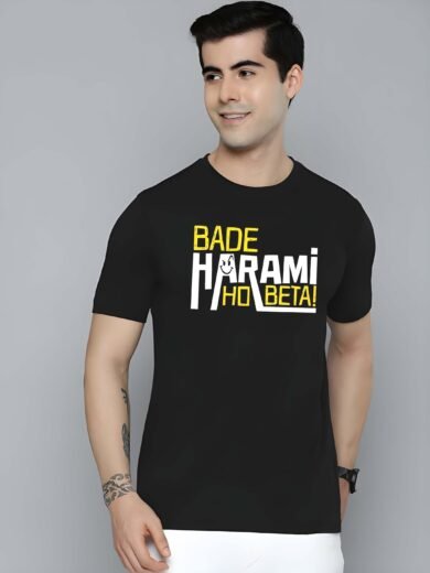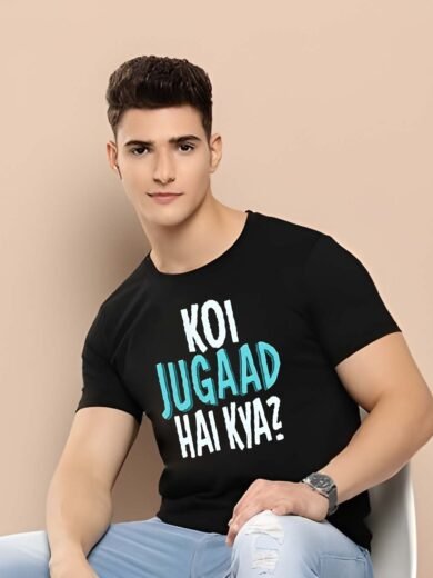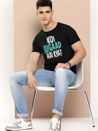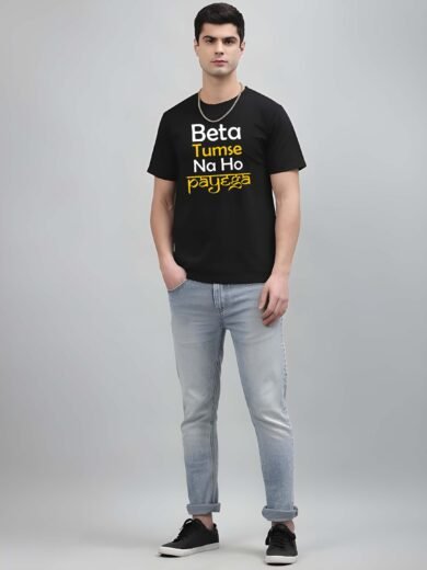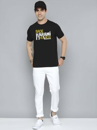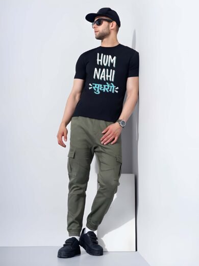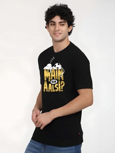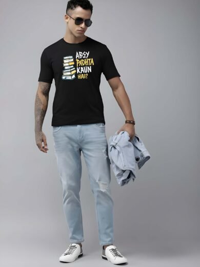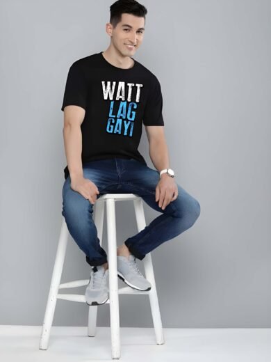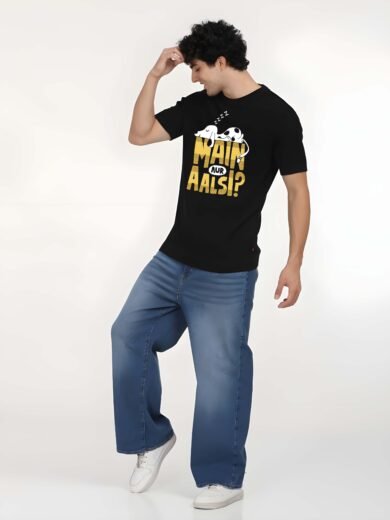 Black Graphic Print Cotton Regular T-Shirt for Men Casual Wear by Just Casual
