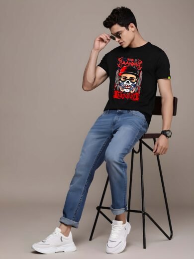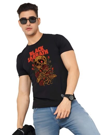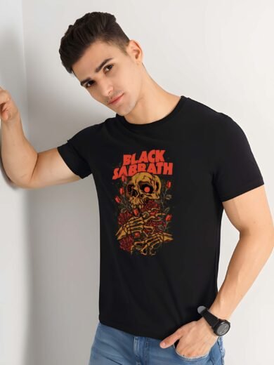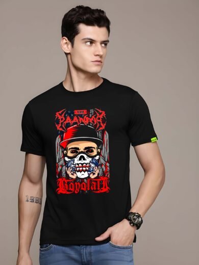 Black Graphic Print Cotton Regular T-Shirt for Men Casual Wear by Just Casual