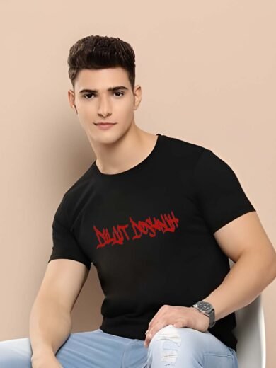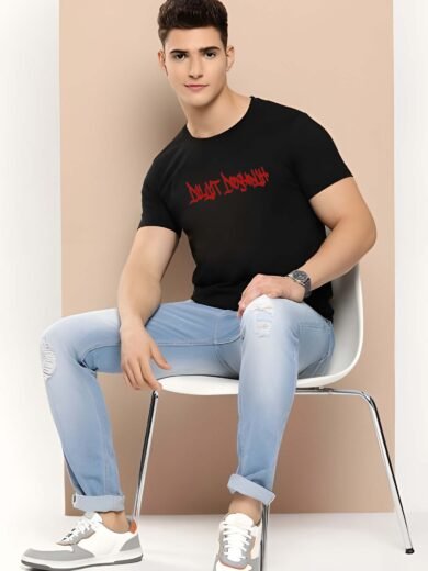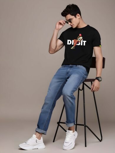 Black Graphic Print Cotton Regular T-Shirt for Men Casual Wear by Just Casual