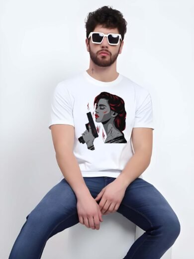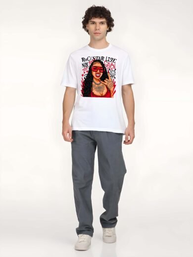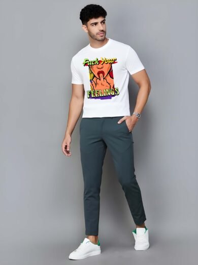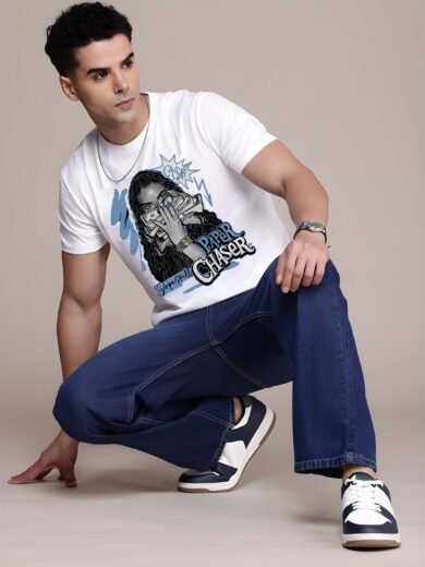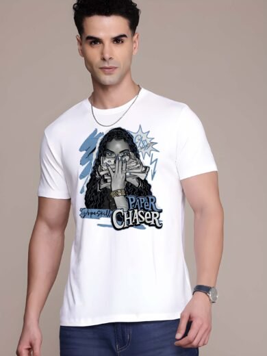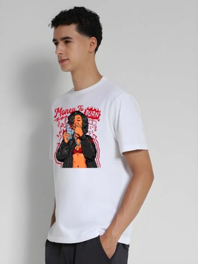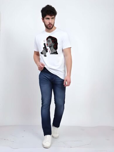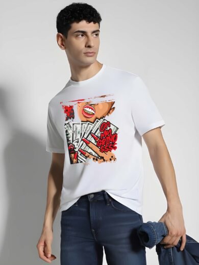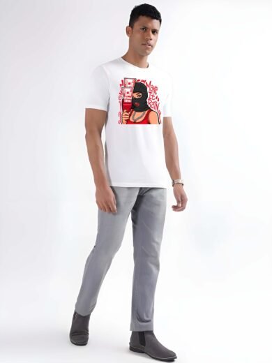 White Graphic Print Cotton Regular T-Shirt for Men – Casual Wear by Just Casual
